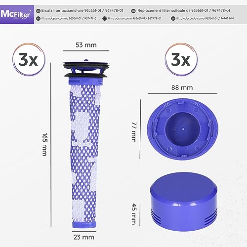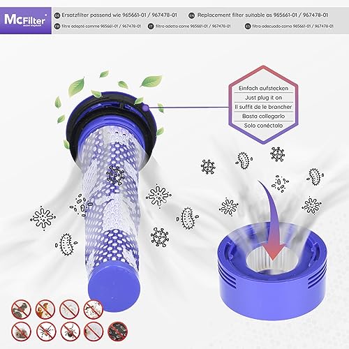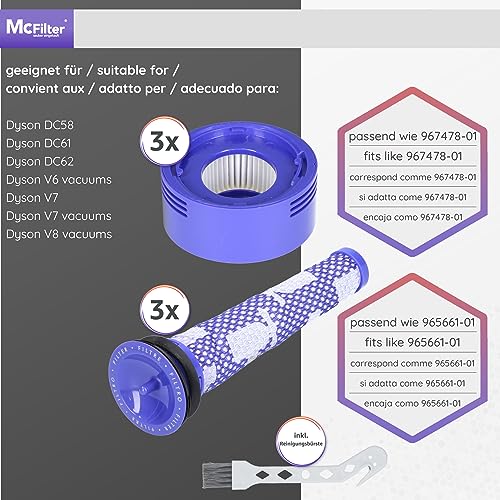 McFilter | 3x filtro HEPA post filtro motore e prefiltro | per Dyson V8 V7 Animal Absolute Fluffy batteria hoover testa motore parti di ricambio filtro accessori set 965661-01/967478-01