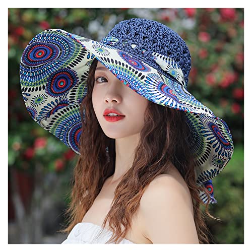 MCHDMI Cappello Donna Estivo, Cappello Estivo da Donna Pieghevole da Donna in Paglia, Cappello da Sole Anti-ultravioletto, Cappello da Spiaggia al Mare (Color: T-3, Size: 56-58cm)