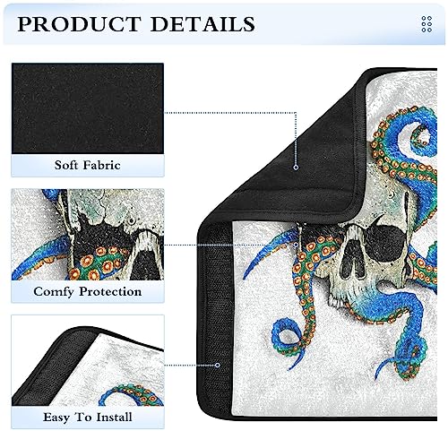 MCHIVER Copri cintura di sicurezza per auto con teschio e polpo per adulti e bambini, 2 pezzi, cuscino per cintura di sicurezza, 16,5 x 16,5 cm
