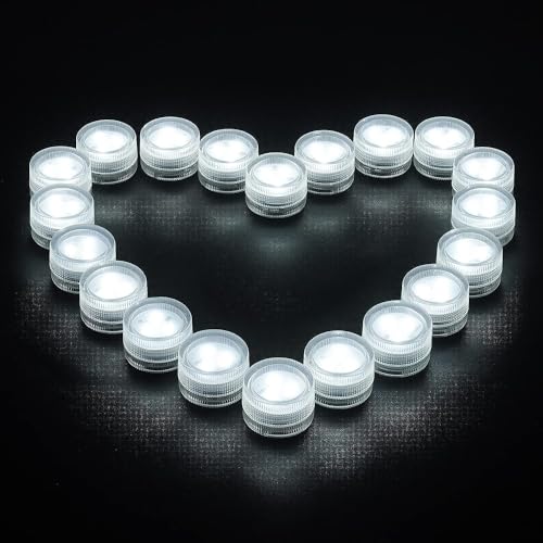 Mchoter Mini luci a Led sommergibili Piccole luci subacquee del tè impermeabili Flameless Pure Luci bianche azionate a batteria per illuminazione della decorazione (20pcs senza telecomando)