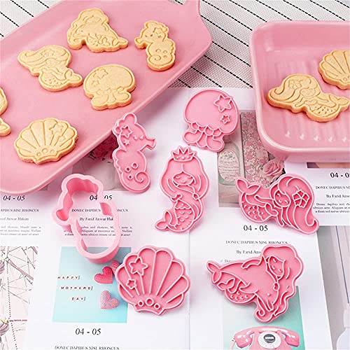 Mciskin Set di formine per Biscotti con Sirena Creatura dell'Oceano, 6 Pezzi Formine per Fondente Timbri per Biscotti a Stantuffo Stampi da Forno, Timbri per Biscotti Animale Strumento di Cottura
