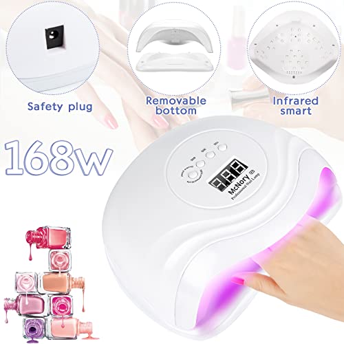 McNory Lampada Unghie LED UV Professionale,168W Fornetto Unghie Può Curare Rapidamente,Sensore Di Avvio Automatico,Timers da 10s/30s/60s/90s,LCD Display Lampada per unghie per Gel Nail Polish Light