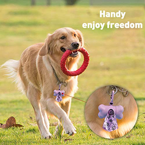 【Comodo da usare】Il dispenser in plastica permette di strappare facilmente un sacchetto dal rotolo, mentre il gancio a moschettone è utile per agganciare il dispenser al guinzaglio.La linea tratteggiata è chiara e facile da separare e strappare i sacchetti dei rifiuti del cane.