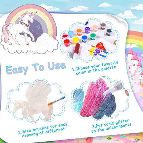 McNory Unicorno Giocattolo Bambina Set Pittura Regalo Ragazza,Unicorno Giocattoli Unicorno Figure per Pittura Unicorni da Dipingere Giochi DIY Unicorno Creativi Regalo per Bambini 4 5 6 7 8 Anni