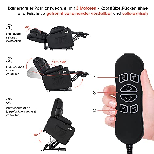 Con supporto integrato per alzarsi: La poltrona elettrica con ausilio per alzarsi può essere inclinata in avanti fino a 45 gradi. Permette di alzarsi con facilità. Poltrona perfetta per anziani e persone con disabilità, al fine di migliorarne la mobilità.