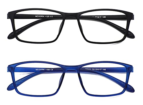 MCOORN Occhiali da Lettura Grandi Larghi per Uomo, Flessibile Anti Luce Blu, Leggeri Resistenti, Diottrie +2.5