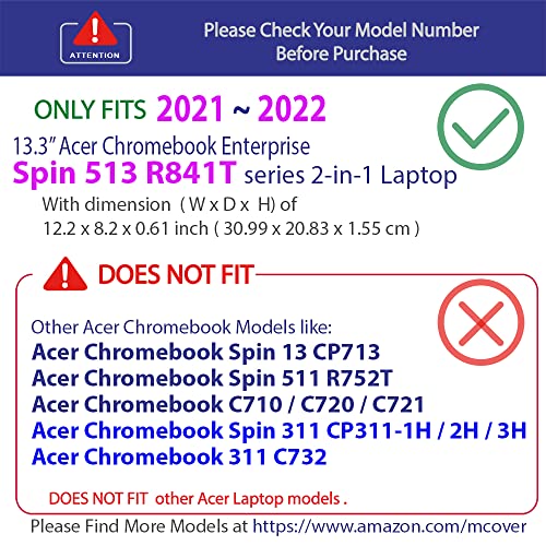 MCover Custodia compatibile per notebook Acer Chromebook Enterprise Spin 513 R841T serie 513 R841T da 13,3" (non compatibile con altri modelli ACER), trasparente