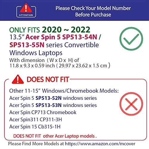 MCover Custodia compatibile solo per laptop convertibile Acer Spin 5 SP513-54N / SP513-55N serie 2020 ~ 2022 da 13,5 pollici (non compatibile con altri modelli ACER) - Nero