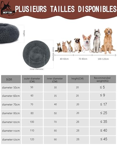 MCPTSN Cane sfoderabile, cuscino anti stress cane, letto lenitivo per cani, cuscino rimovibile e lavabile, comodo e morbido (M:60 cm, grigio)