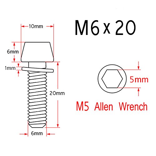 MCTi [4 Pack] Mountain Bike Bicicletta M6 x 20 mm 6AL/4 V Gr5 Titanio Vite Bulloni Tapered Bolt Viti Brugola Metriche Esagonali