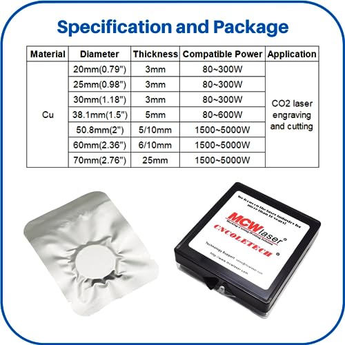 MCWlaser Diametro specchio di riflessione rame rame 1PCS: 30mm per taglio laser ad alta potenza CO2 da 10,6um Incisione/taglierina da 80W a 200W 10,6um