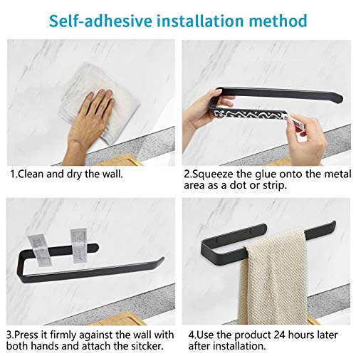 2 metodi di installazione: questo portasciugamani bagno offre 2 diversi metodi di installazione, autoadesivo e montato a parete per soddisfare le diverse pareti. È possibile utilizzare la colla autoadesiva per installare il porta salviette nero su piastrelle, vetro, specchi, granito, acciaio inossidabile, acrilico, laminato senza forare, oppure è possibile utilizzare viti per montare il porta asciugamano da muro su altre superfici (come carta da parati e superfici ruvide)