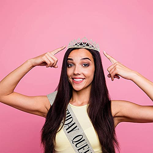MDDZ 2 Pezzi Corona Compleanno, Compleanno Ragazza Tiara, Compleanno Fascia, Compleanno Ragazza Tiara Corona per Accessori Feste Compleanno, Regali, Decorazioni, Souvenir, Argento