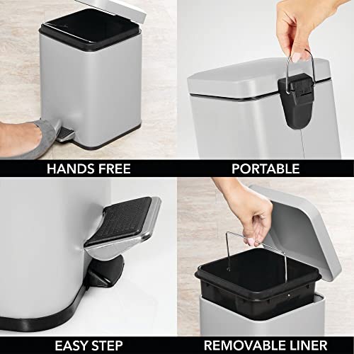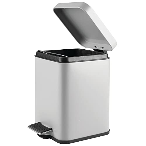 MDesign Bidone spazzatura quadrato con volume di 6 L - Contenitore raccolta differenziata in metallo e plastica - Pattumiera a pedale con coperchio e secchio interno estraibile - grigio