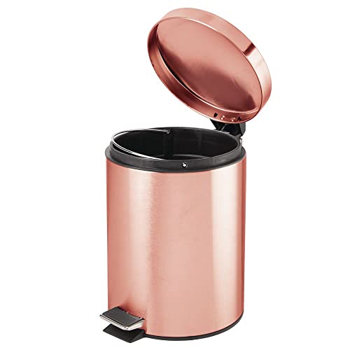 MDesign Bidone spazzatura rotondo di 5 L - Perfetto come contenitore raccolta differenziata - Pattumiera a pedale in metallo e plastica con secchio estraibile - oro rosato