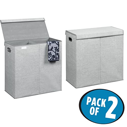 MDesign Set da 2 Cesti Biancheria - Portabiancheria per Bagno o Lavanderia Domestica - Capienti contenitori Biancheria - Grigio