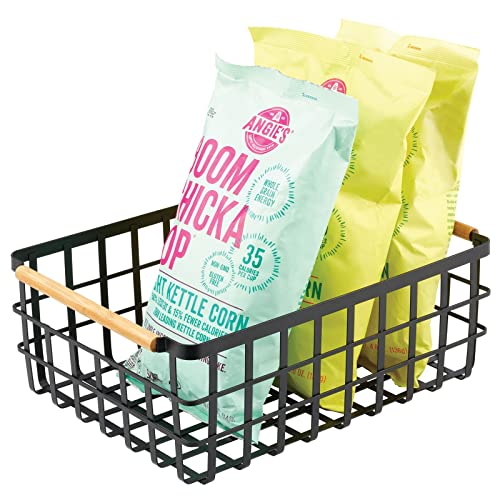 MDesign cestino portaoggetti grande in filo metallo - Porta oggetti aperto adatto per cucina, bagno, ufficio, lavanderia - Pratico organizer multiuso con maniglie in bambù - set da 4 - nero opaco