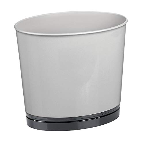 MDesign Cestino Spazzatura da Bagno - Elegante bidone della Spazzatura Ovale e Contenitore Cosmetici - in plastica Robusta con Finitura Spazzolata - Grigio/Nero