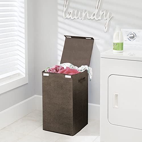 MDesign Cesto per biancheria in polipropilene - Portabiancheria per bagno o lavanderia domestica - Capienti contenitori biancheria con coperchio e manici - marrone scuro