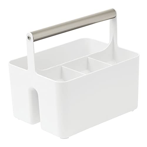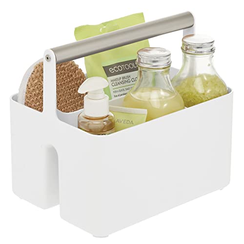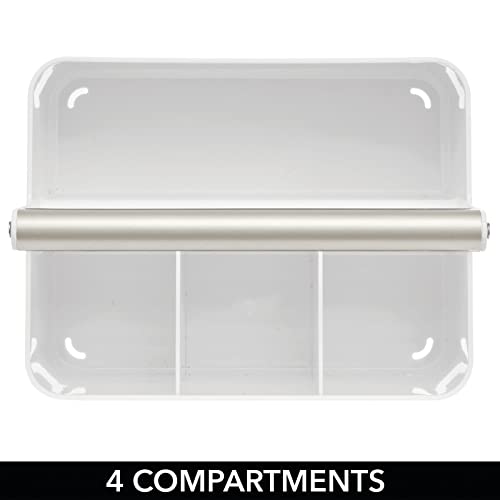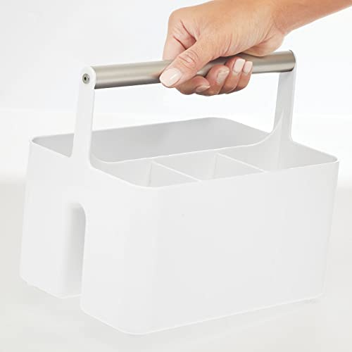 MDesign Cesto portaoggetti bagno - Scatola per armadio con comodo manico - Contenitore salvaspazio dotato di quattro pratici scomparti per accessori, trucchi e molto altro - bianco/argento opaco