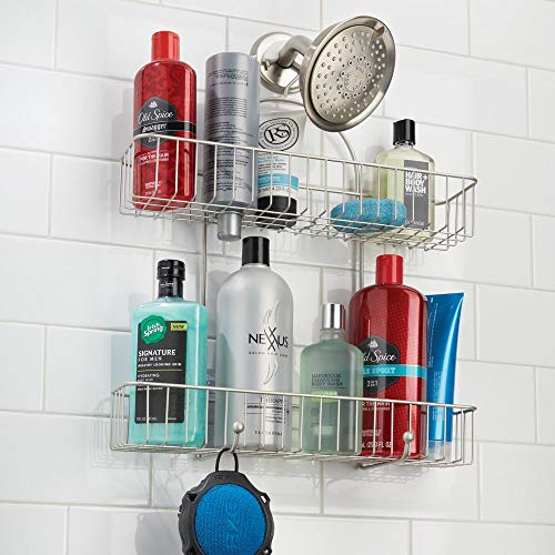 MDesign Cesto portaoggetti per doccia - Porta flaconi in metallo resistente - Organizer per doccia ideale per flaconi, rasoi, spugne, ecc - Con 2 cesti e 2 ganci - argento opaco