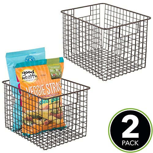 MDesign Set da 2 Cesto portaoggetti in filo metallico - Organizer versatile con manici per cucina o dispensa - Contenitore universale in metallo - bronzo