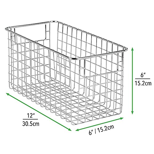 MDesign Set da 2 Cesto portaoggetti in Filo Metallico - Organizer Versatile con Manici per Cucina o dispensa - Grande Contenitore Universale in Metallo - Argento