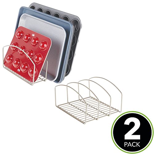 MDesign Set da 2 Comodi portateglie per armadietti - Porta teglie Verticale per pensili e Ripiani - Porta taglieri, Piatti e teglie salvaspazio in Metallo - Argento Opaco