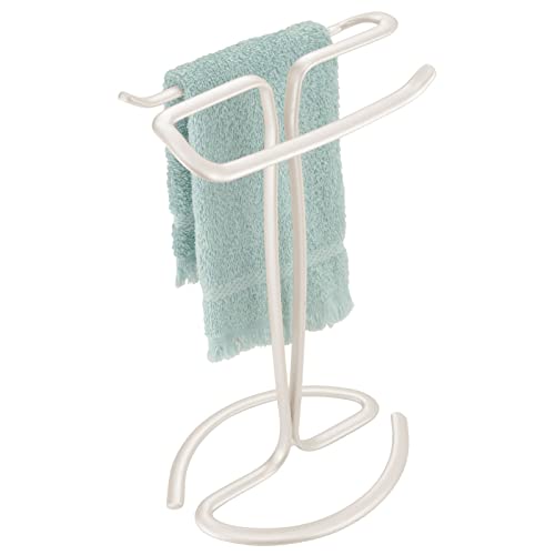 DESIGN AUTOPORTANTE: Il porta asciugamano da terra in set da 2 è dotato di bracci su cui appendere gli asciugamani. Poggia su uno stabile supporto e può contenere 2 piccoli asciugamani.