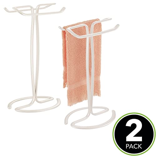 MDesign Compatto portasciugamani - Appendino per accessori bagno, asciugamani, piccole tovaglie ecc. - Porta asciugamani da bagno in metallo per 2 piccoli asciugamani - Set da 2 - crema
