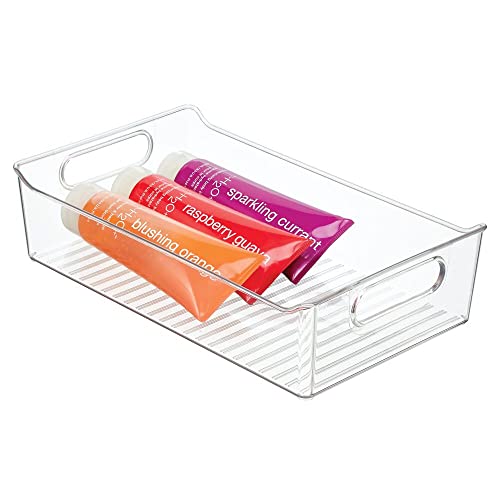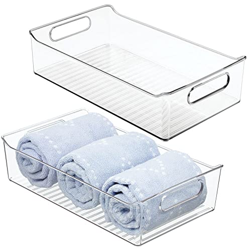 MDesign Contenitore per il bagno con maniglie - Organizer in plastica trasparente per cosmetici, creme, ecc. - Cesto per il bagno impilabile dal design accattivante - Set da 2 - trasparente