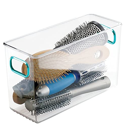 MDesign Contenitore per il bagno - Organizer per il bagno di plastica per asciugamani, prodotti bagno e cosmetici - Pratico cesto per il bagno con manici - Set da 4 - trasparente/blu