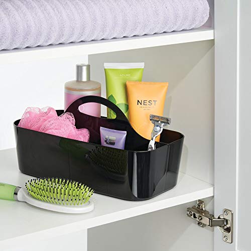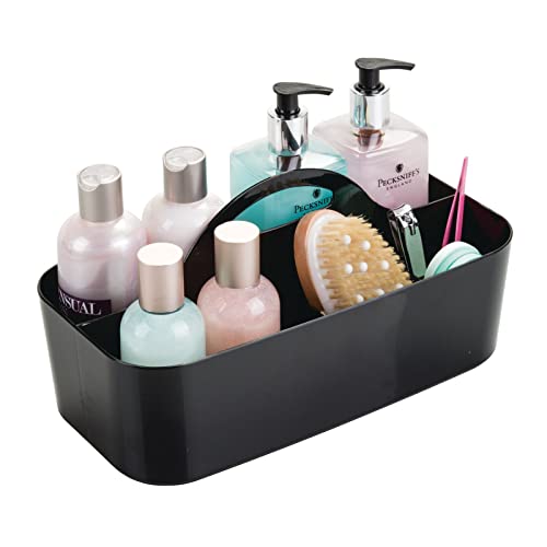 MDesign Contenitore Bagno - Portaoggetti a 6 Scomparti - Organizer Bagno e Doccia - per Shampoo, Sapone, Cosmetici, Rasoio, balsamo, Creme - Materiale: plastica - Colore: Nero