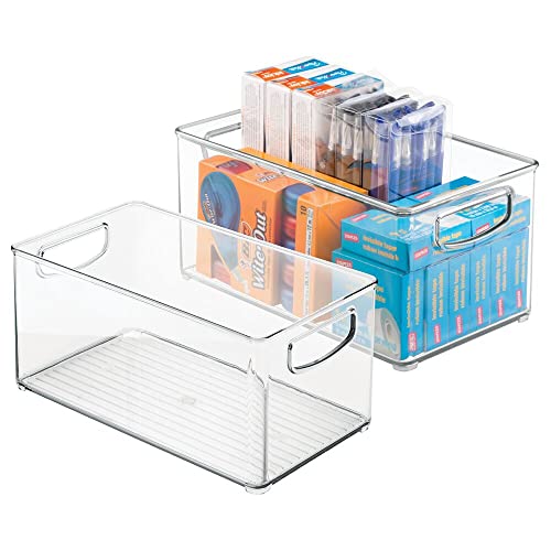 MDesign Contenitore porta oggetti - Box in plastica ideali per cucina, ufficio e bagno - Portaoggetti versatile con manici integrati - Set da 2 - Trasparente