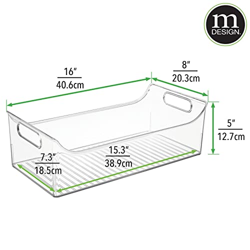 MDesign Set da 4 contenitori alimenti con manici - Portaoggetti frigo lungo per cibi cotti o confezionati - Contenitore freezer in plastica per cucina - trasparente