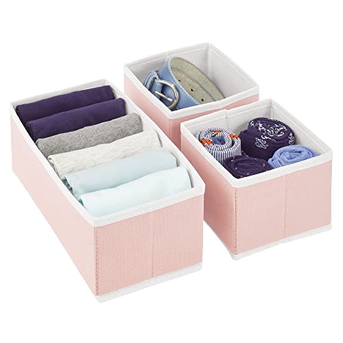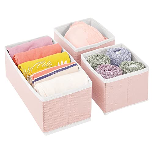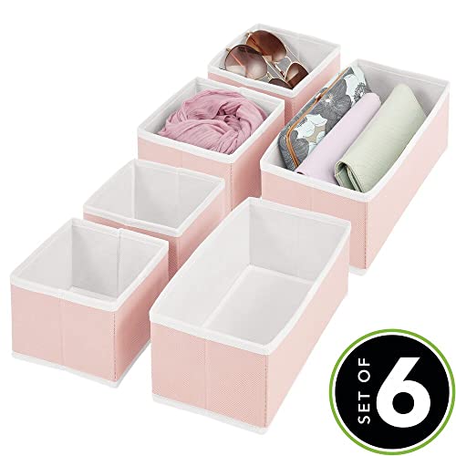 MDesign Set da 6 contenitori per la cameretta - Contenitore e Organizer Armadio in Fibra Sintetica per Calzini e Biancheria - Scatole portaoggetti, Cosmetici, Medicine ECC. - Rosa/Bianco