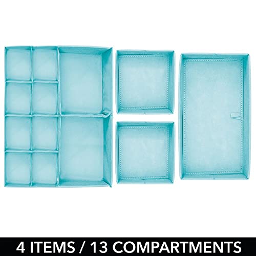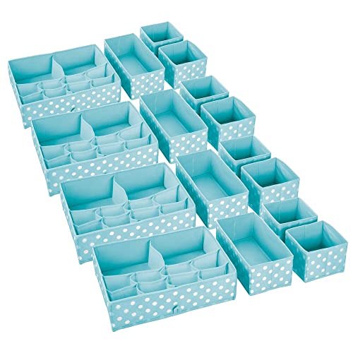 MDesign Set da 16 contenitori per la cameretta in diverse misure - Contenitore portagiochi e organizer armadio in fibra sintetica - Scatole portaoggetti bimbo, cosmetici, medicine - turchese/bianco