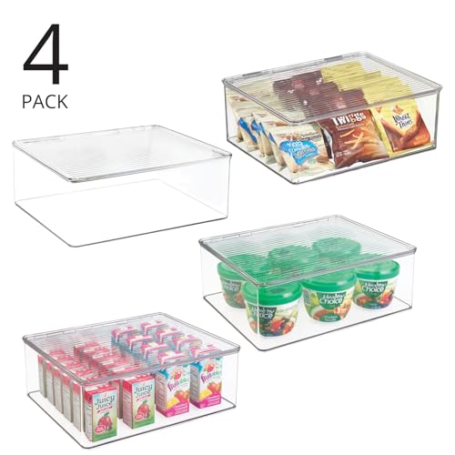 MDesign Set da 4 Contenitori con coperchio a ribalta - Contenitore per alimenti freschi o confezionati - Ideale come contenitore frigo o per dispensa - trasparente