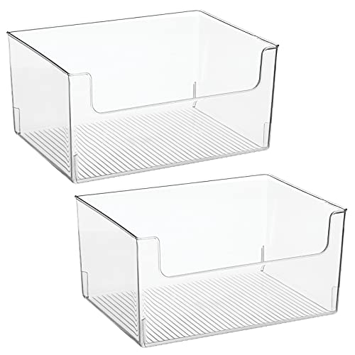 MDesign Contenitori da frigo per alimenti - Scatola da cucina in plastica con apertura superiore e frontale - Organizer frigorifero per bottiglie e cibi sfusi - Set da 2 - Trasparente