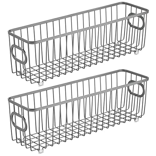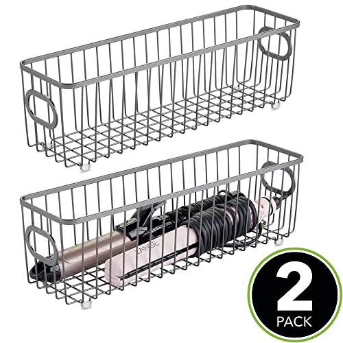 MDesign Set da 2 contenitori con maniglie integrate - Organizer da bagno in filo metallico - Pratico cesto per cosmetici, accessori bagno e asciugamani - grigio scuro