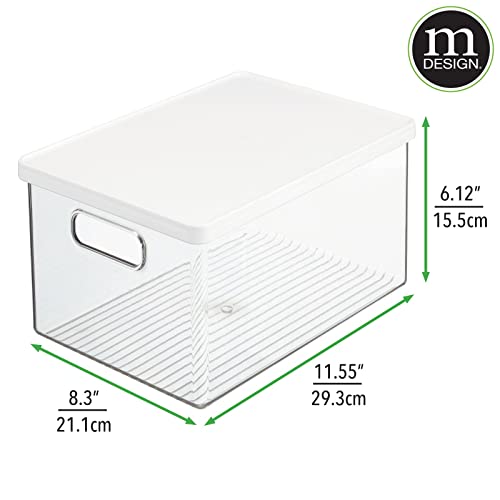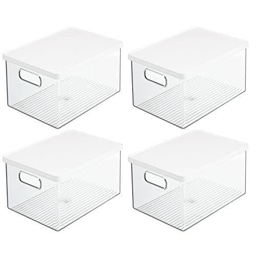 MDesign Set da 4 contenitori in plastica con coperchio e manici - Vaschette per alimenti, biscotti, tè, spezie, vitamine - Contenitori cibo impilabili adatti per frigo e freezer - trasparente/bianco