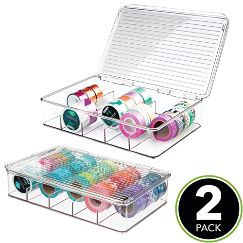 MDesign contenitori in plastica con coperchio a 5 scomparti - ideali per il materiale per decoupage e bricolage, come perline, bottoni o nastri di stoffa - Colore: trasparente - Set da 2