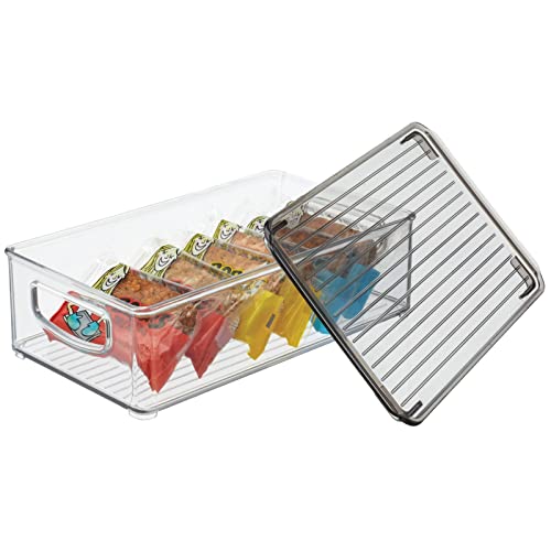 MDesign Contenitori in plastica con coperchio - Vaschette per alimenti, biscotti, tè, spezie, vitamine - Contenitori cibo impilabili adatti a frigo e freezer - Set da 2 - trasparente/grigio fumo