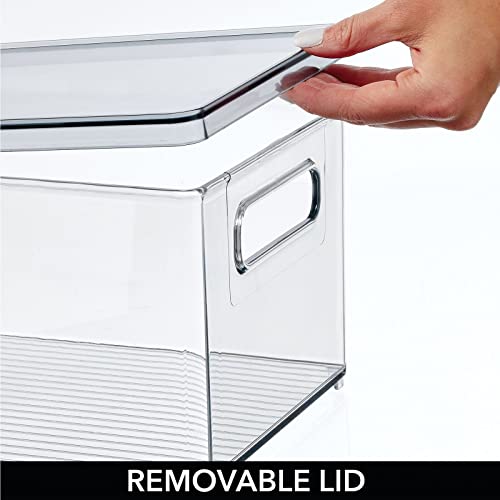 MDesign Set da 4 contenitori in plastica con coperchio - Vaschette per alimenti, biscotti, tè, spezie, vitamine - Contenitori cibo impilabili adatti per frigo e freezer - trasparente/grigio