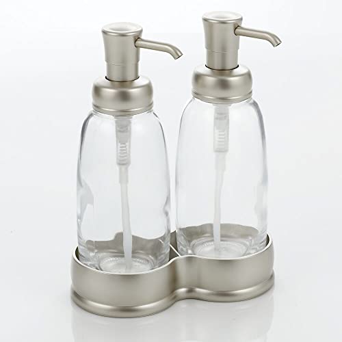 MDesign Doppio dispenser sapone - Portasapone bagno elegante in vetro e plastica - Portasapone liquido ricaricabile per sapone e crema mani - trasparente e argento opaco