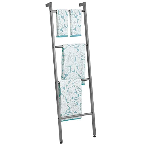 MDesign Elegante scala a pioli da appoggio per il bagno - Moderno porta asciugamani bagno in metallo con 4 ripiani - Porta salviette bagno per asciugamani, vestiti o giornali - grafite