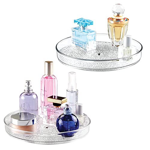 MDesign Set da 2 Lazy Susan Organizzatore Cosmetici Rotante per Armadietto per Tenere Trucco, Prodotti di Bellezza - Trasparente