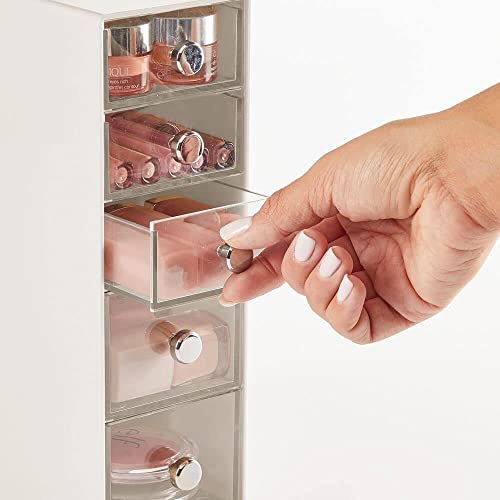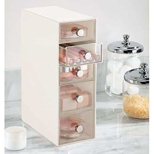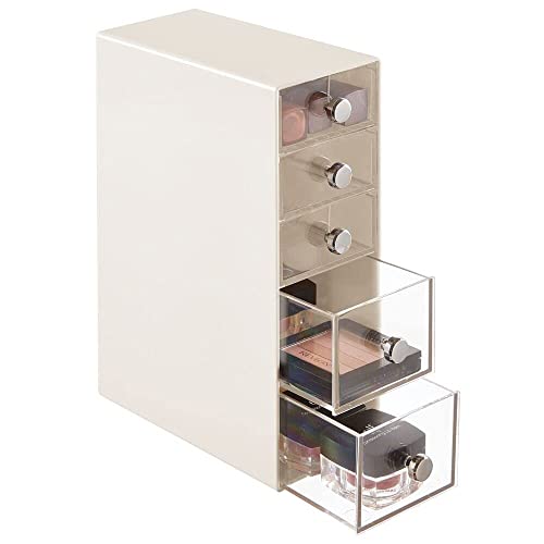 MDesign Make up organizer - Porta trucchi con 5 cassetti per mascara, cipria, smalto e molto altro - Organizer cosmetici per camera da letto, tavolo da trucco o ufficio - crema e trasparente