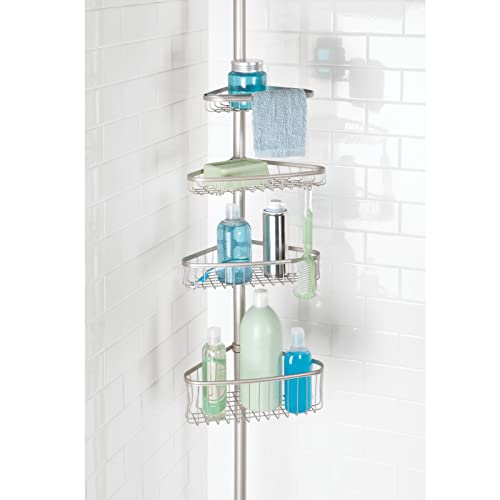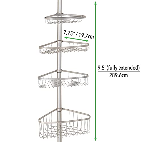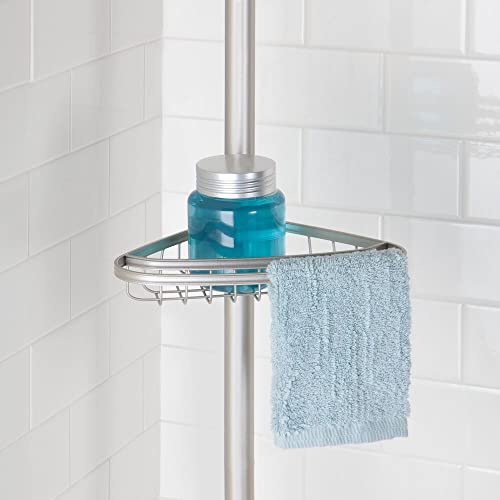 MDesign Mensola per doccia regolabile - Portaoggetti doccia allungabile in metallo senza trapanare - Ideale ripiano bagno per shampoo, rasoi, spugne ed altri accessori doccia - Argentato