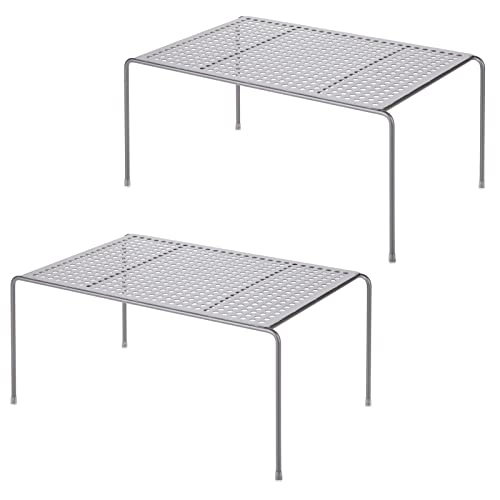MDesign Set da 2 Mensole porta piatti impilabili per la cucina - Ripiano angolare antiscivolo in metallo - Piccolo scolapiatti da appoggio per tazzine e utensili - grigio